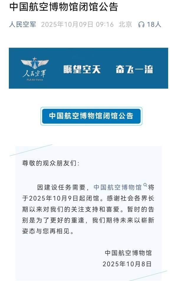 r10月9日,北京昌平大汤山脚下,中国航空博物馆正式闭馆。